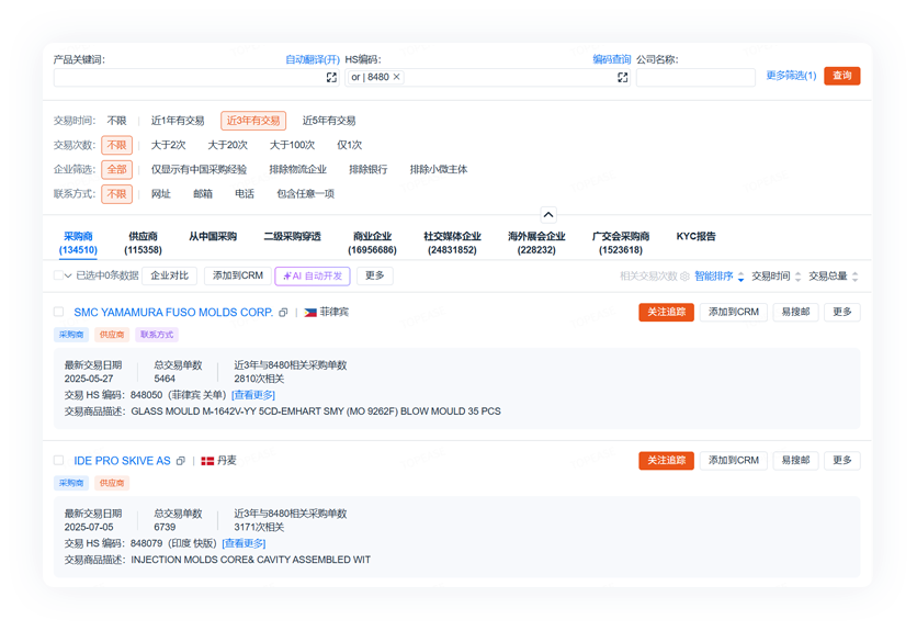 AI助力,高效获取线索全面的数据治理带来的精准结果,整合贸易数据、工商数据、社媒数据等八大数据库。利用AI工具完成海量数据检索,只需提供基本信息,它就能帮您一键创建自动开发任务并开始客户开发。