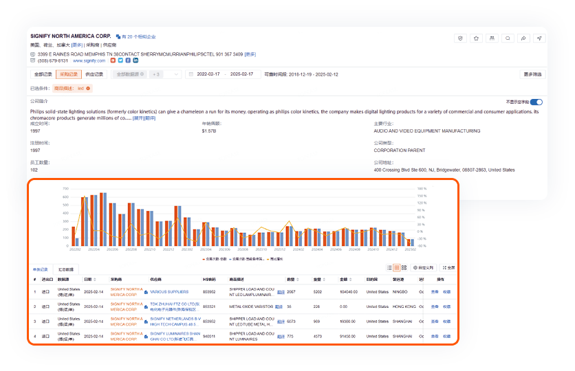客户企业全景全情调查整合企业工商与贸易记录,生成动态客户画像,辅助风险评估与 优先级划分。清晰展示企业年销售额、行业分类、采购周期;通 过标签体系分类管理客户,实时追踪交易动态,订阅采购记录通 知让客户信息尽在掌控。
