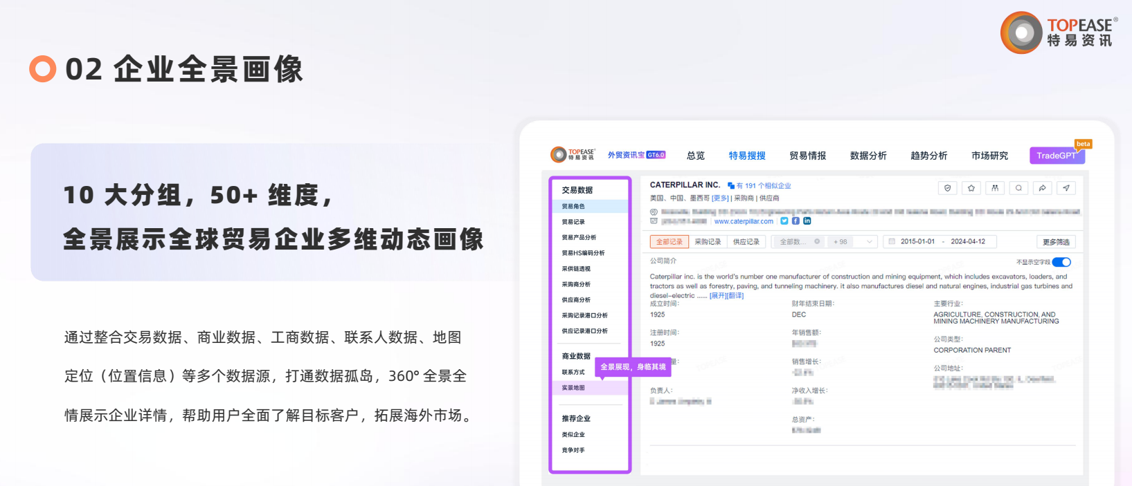 特易资讯作为行业内敢为人先、引入 AI 技术深耕数据治理领域的先锋,为外贸资讯宝 GT6.0 筑牢了稳固可靠的 “数据城墙”。在繁复的数据梳理流程里,尽管从企业名称规范到产品表述统一等工作千头万绪,但成果卓然,实现了大面积的数据标准化覆盖,让海关数据呈现出规整、清晰 “面貌”。企业名称得以精准识别、合并同类项,产品名称提取规范合理、单位统一有序,外贸企业登录平台查询时,仿若步入一座井然有序的 “数据图书馆”,各类信息一目了然,轻松规避因数据杂乱导致的查询误差与分析困境,为后续高效利用海关数据铺就坚实 “基石”。