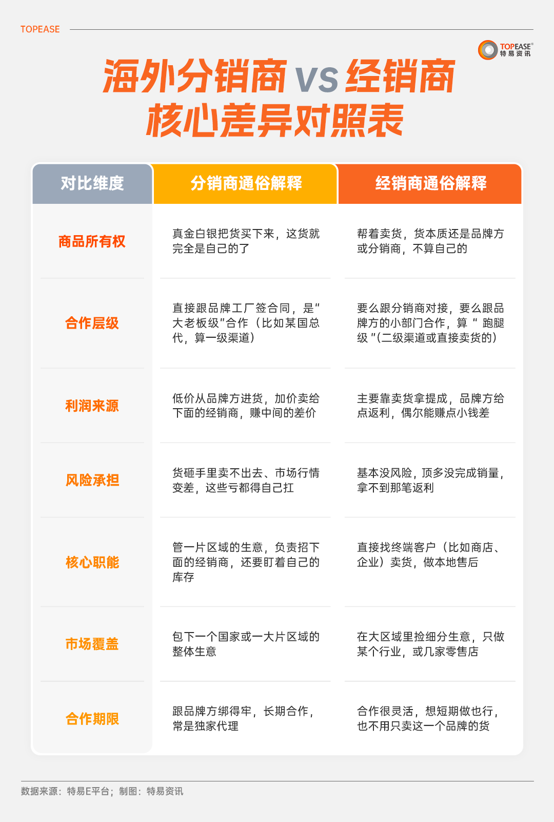 要是还搞不清这个,那你海外订单真的很容易丢。下面这张海外分销商VS经销商核心差异对比图非常直观可以给你答案。