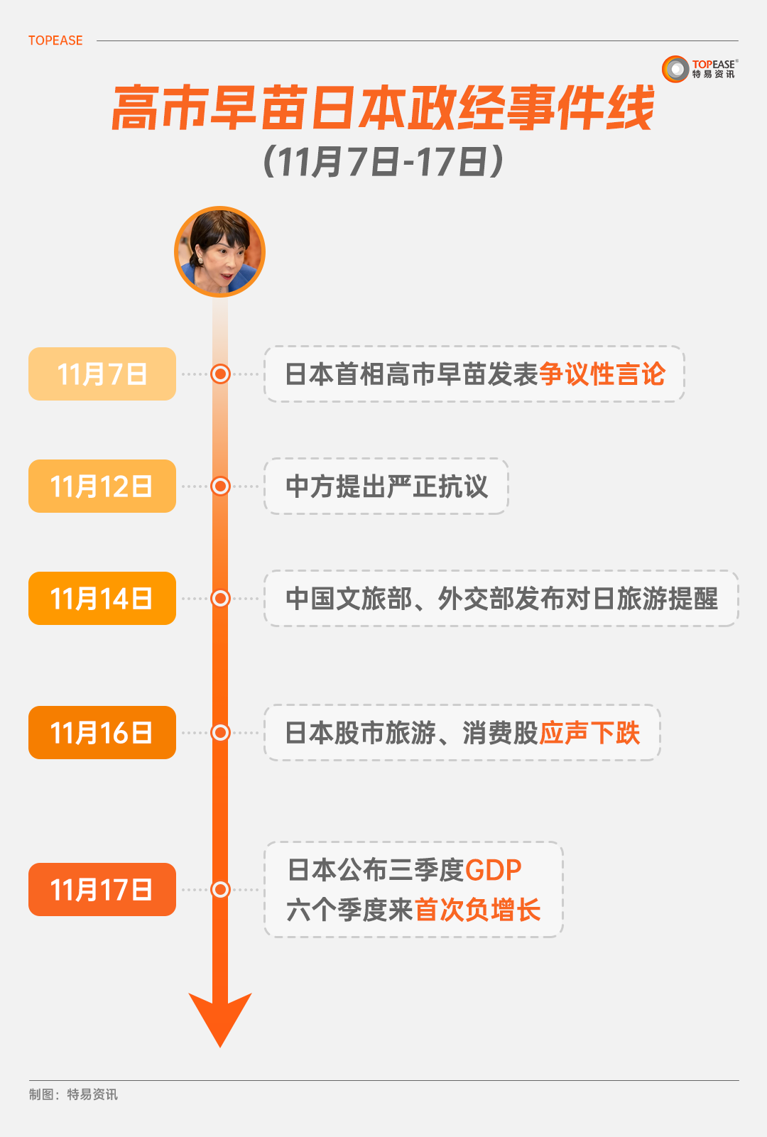 11月以来,日本首相高市早苗的涉台言论持续发酵,从国会 “狂言” 到民众抗议,再到中方多部门连发预警,短短 12 天,东亚局势与日本经济联动承压。