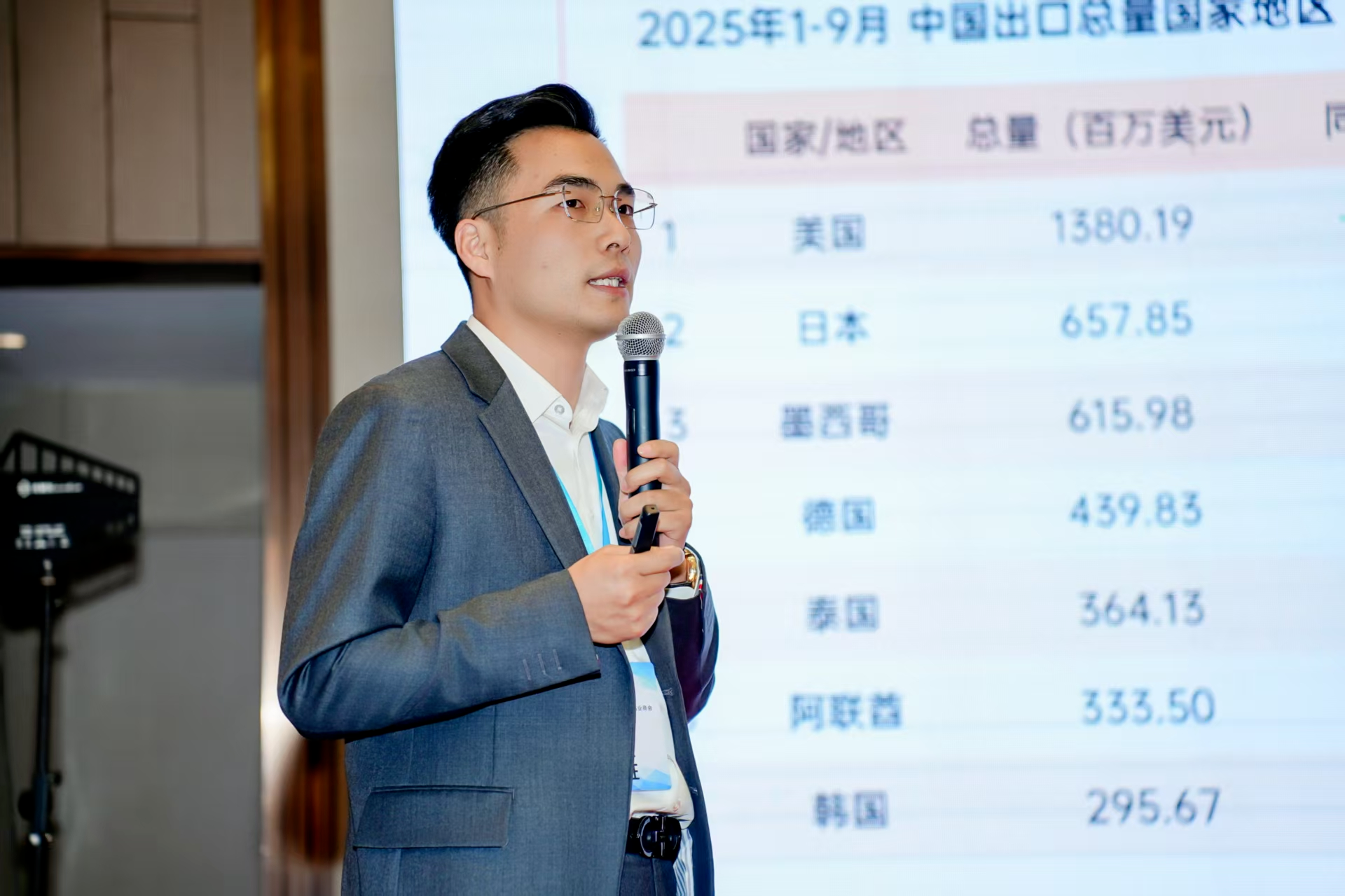 特易资讯应邀参与此次盛会,在现场营销总监张鹏飞,针对当前复杂的国际贸易环境与市场机遇,发表了专项汇报。