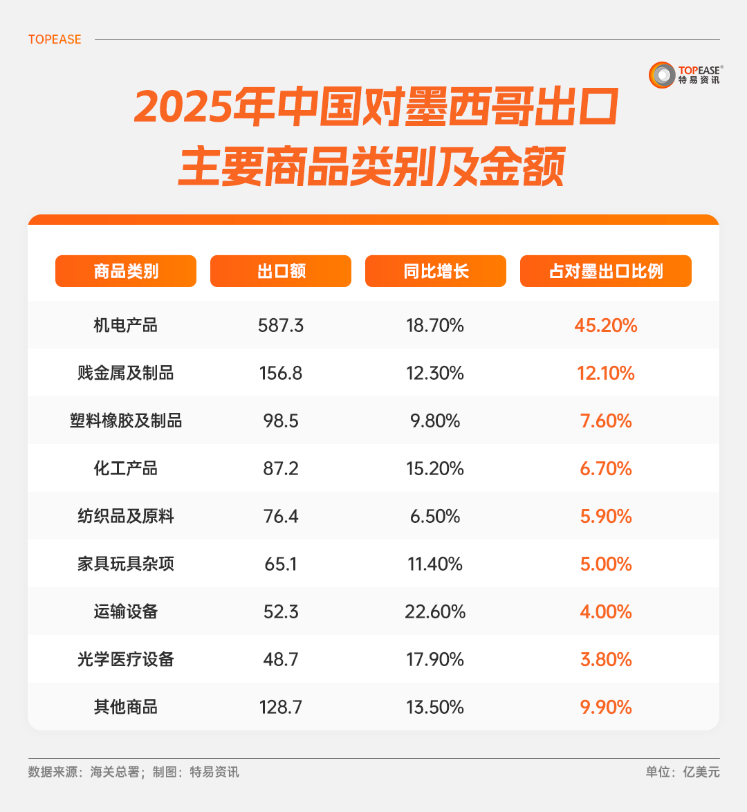 从表格数据可清晰看出,中墨贸易呈现“稳中有升、韧性强劲”的核心特征,这也是外贸人布局墨西哥市场的核心底气。