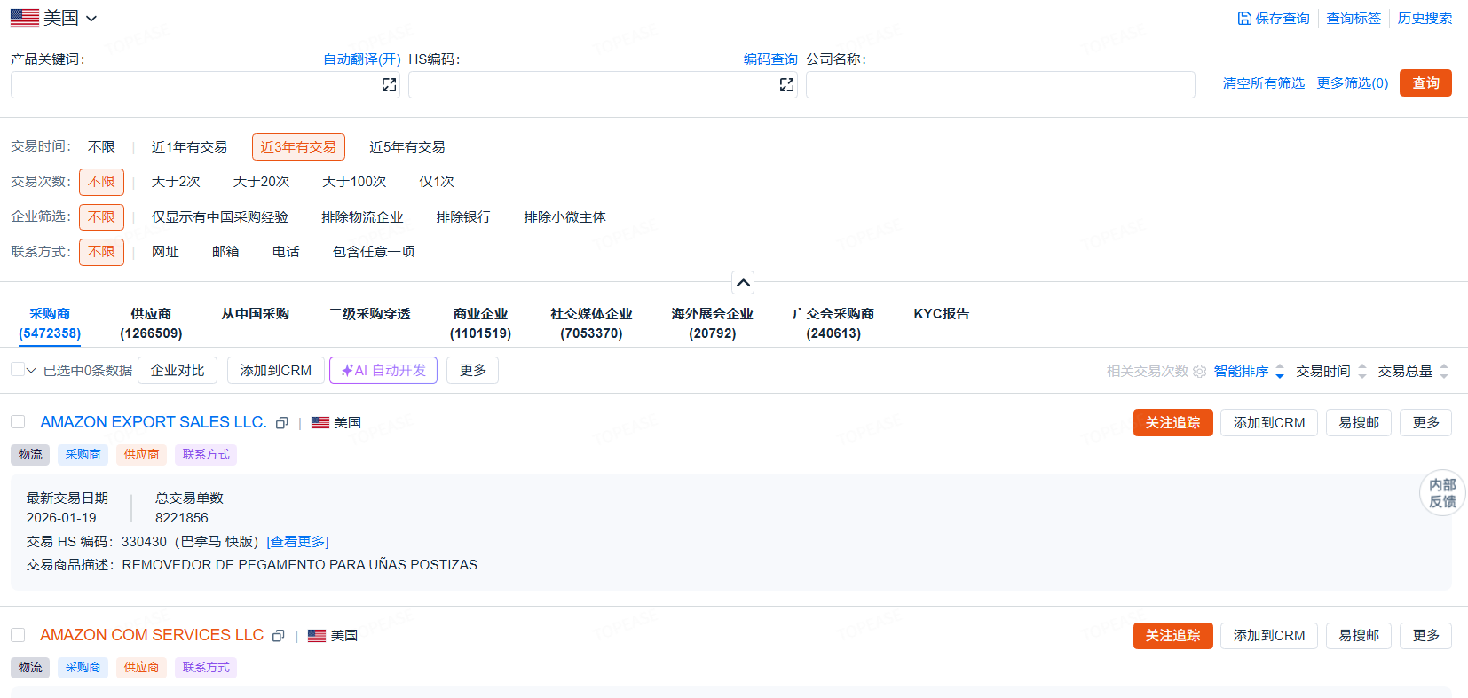 这正是特易资讯外贸大数据平台的价值所在。以开拓开发美国市场为例: