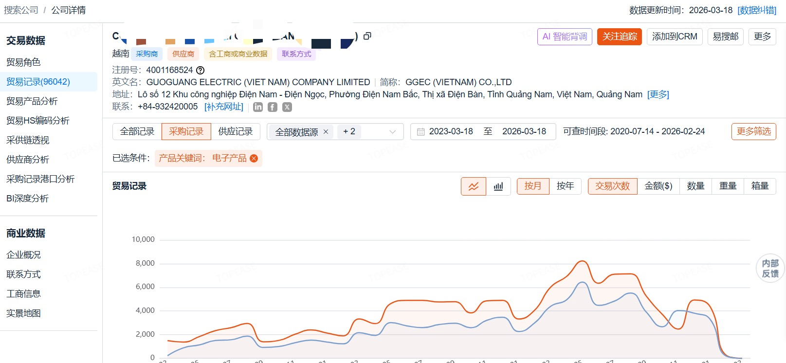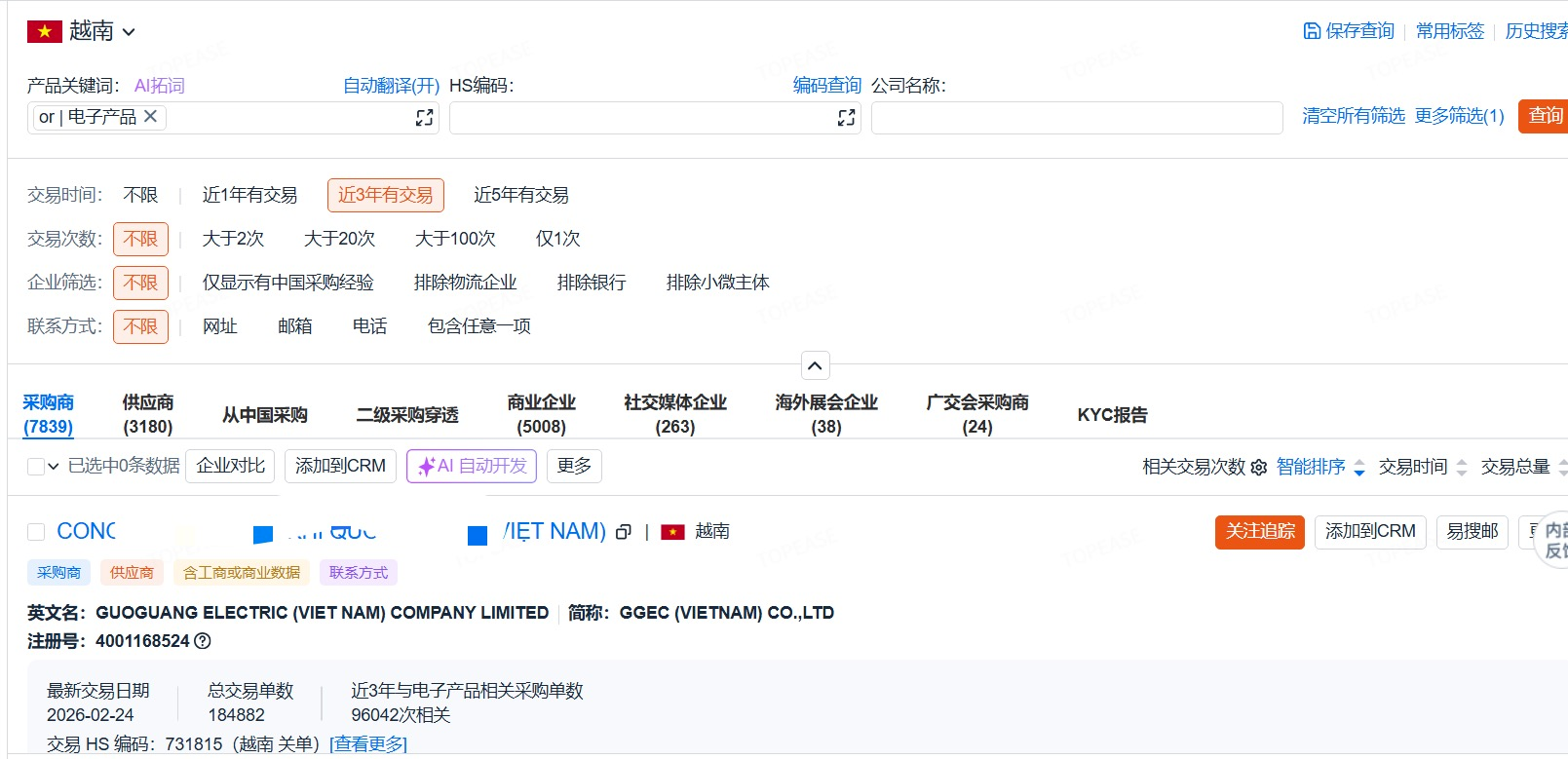 客户挖掘:基于海量贸易数据与AI智能推荐,企业可直接锁定越南活跃采购商,了解其采购规律、产品偏好,实现精准触达。