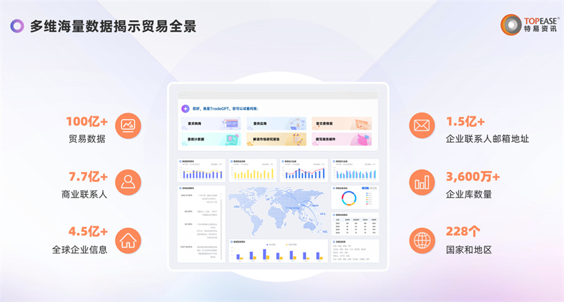 - 一站式智能营销服务:特易外贸资讯宝GT6.0提供了涵盖市场分析、潜客挖掘、风险管理等在内的一站式智能营销服务。企业无需在多个平台或工具之间频繁切换,即可在一个统一的平台上获取全方位的外贸支持。这种一站式服务模式极大地简化了企业的工作流程,提高了工作效率,助力企业实现业务的指数级增长。