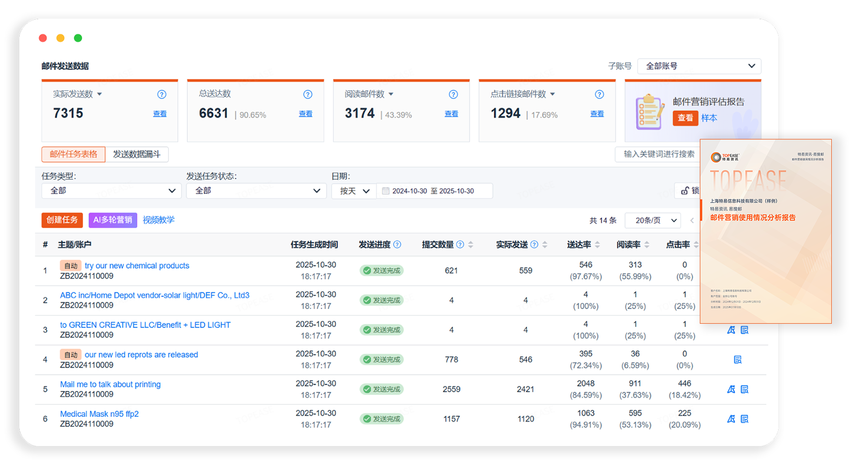 邮件营销效果难以定量评估?邮件营销后得到数字化反馈,如邮件打开量、阅读量、链接点击量等关键指标。让邮件营销的转化率飙升,持续优化升级营销策略。