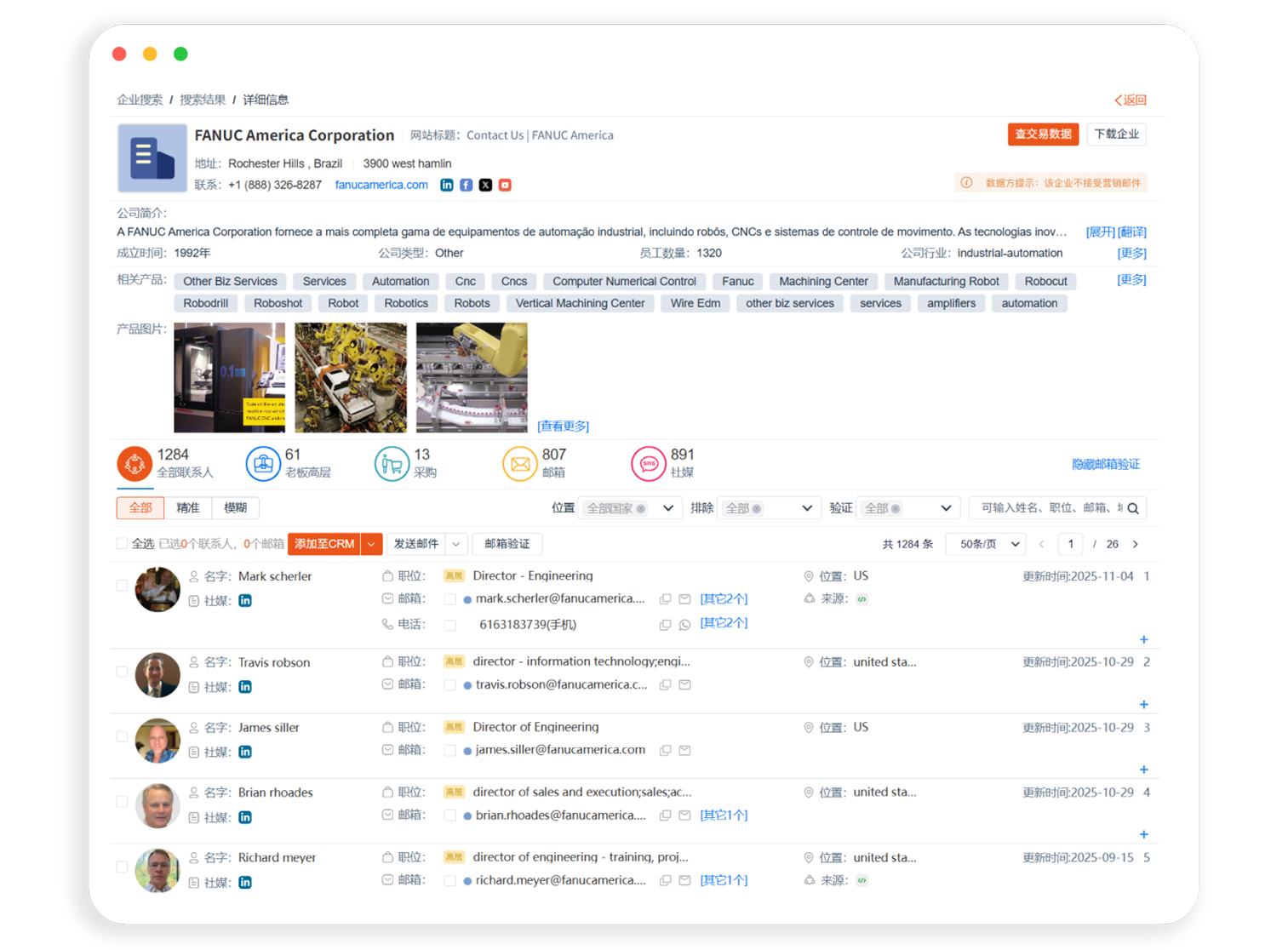 这里有7.7亿+精准联系人数据,一键即可得到精准的联系方式。同时智能识别联系人身份,您想联系客户公司的老板还是采购经理,都能找到多渠道的联系方式,直接联系核心决策人。