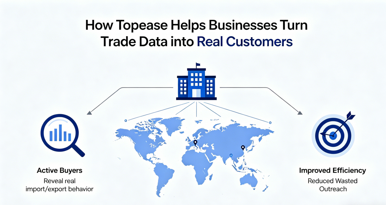 Trade data provides visibility into demand trends, buyer activity, and competitive gaps. Platforms like Topease help teams turn these insights into actionable market decisions.