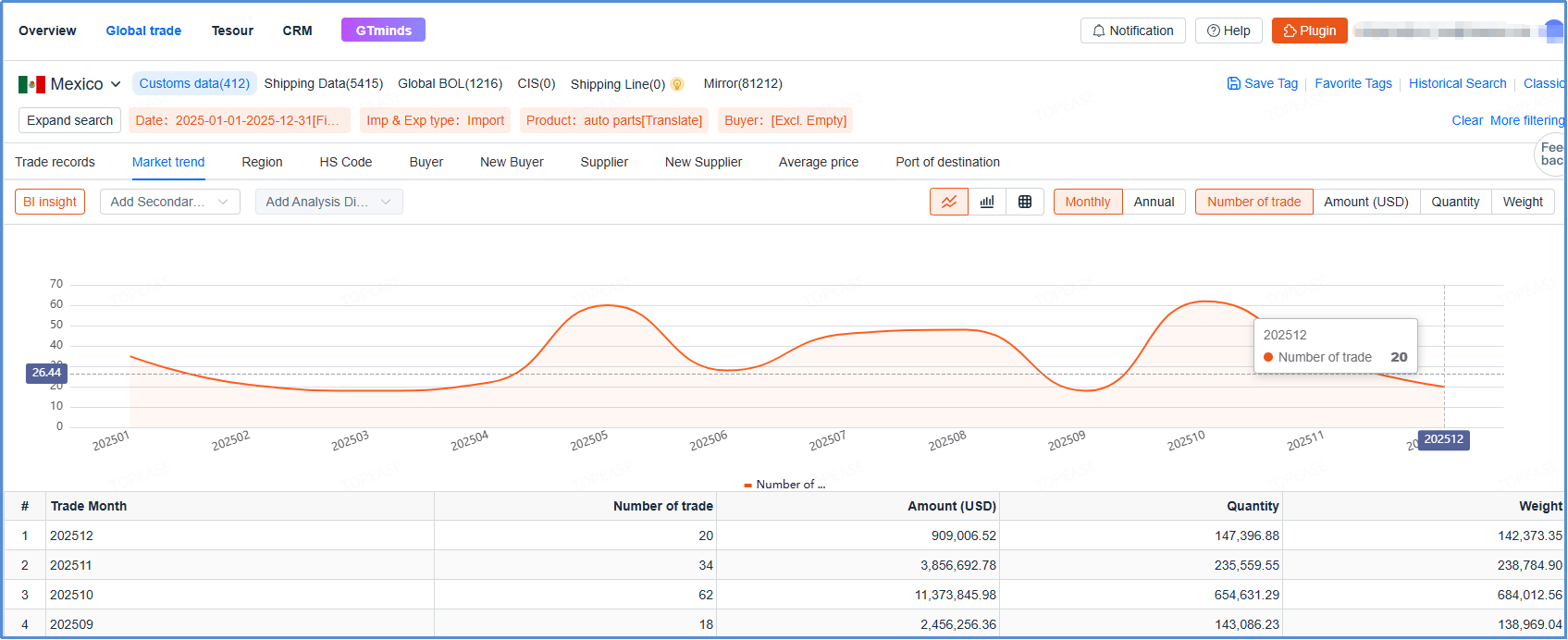 Mexico Import Trends: Trade Data Dashboard on Topease