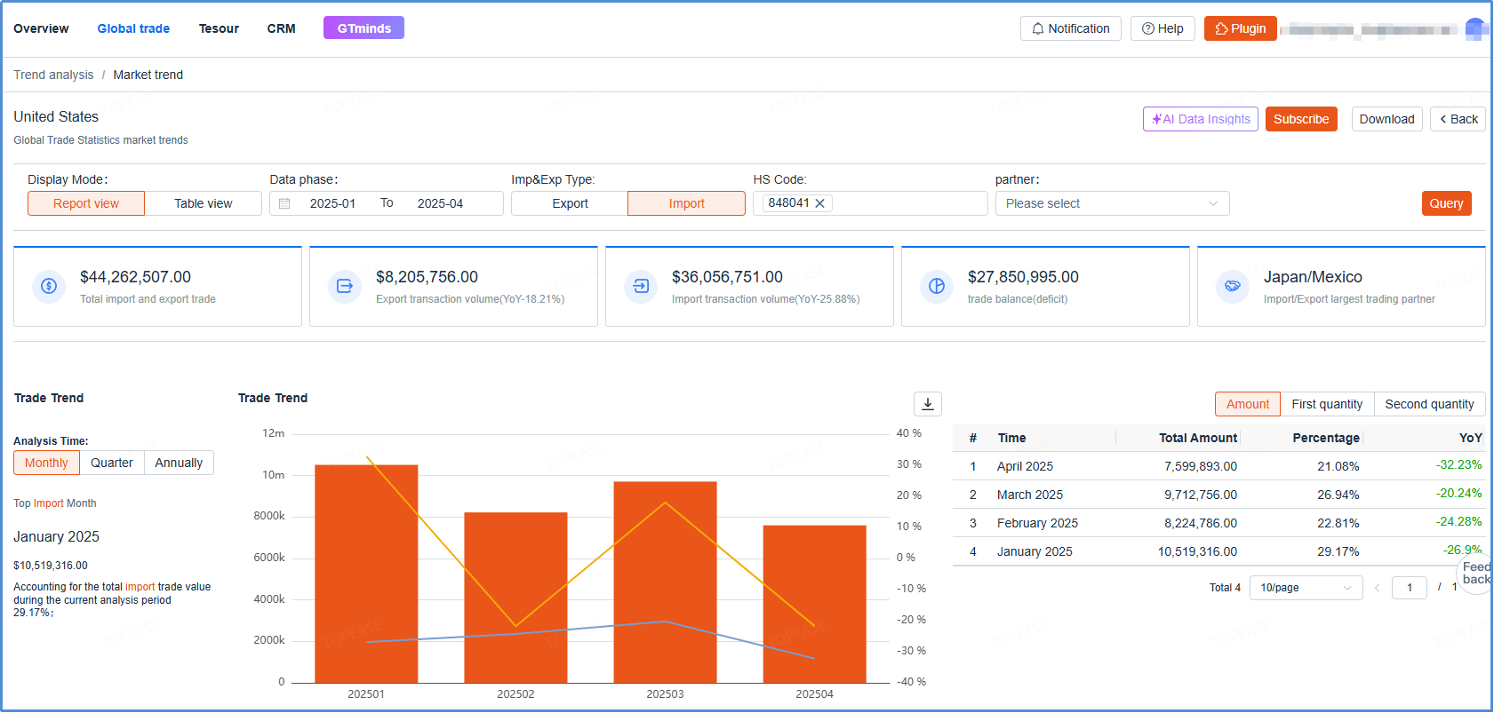 United States Import Trends: Trade Data Dashboard on Topease