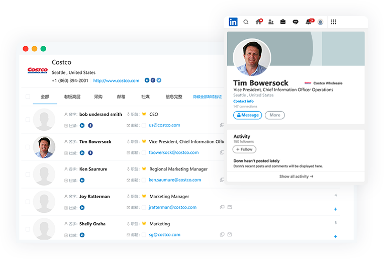 Linkedln助手:挖掘企业贸易数据、更多联系人信息